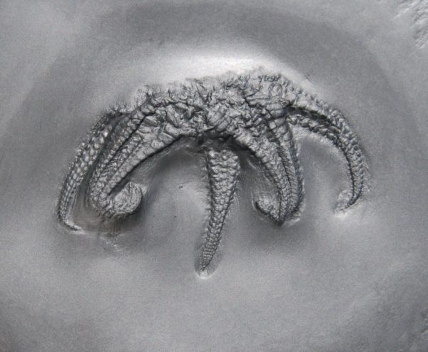 - The shape of the arms: The arms are widest at the base of the disc and taper very evenly towards the tips. There are usually no visible spines, which further emphasizes the clear lines of this fossil.