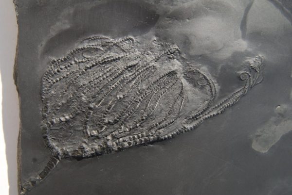 If you want to document the diversity of crinoids, Taxocrinus stuertzii is a must. It represents a completely independent evolutionary path. Its soft, flexible structure means that it is often preserved in the slate in particularly aesthetic, almost “dancing” poses.