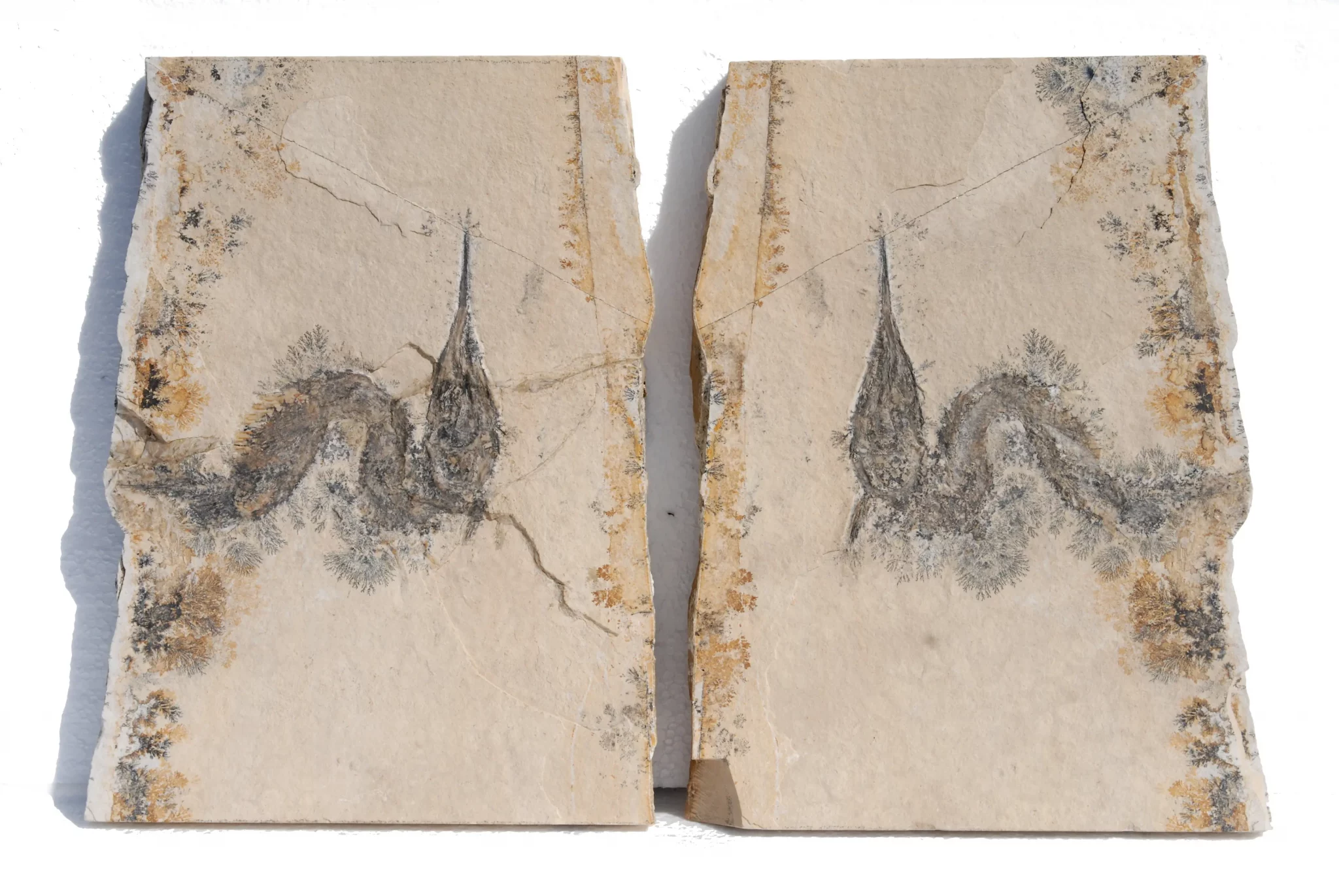 - Aesthetics of the line: the graphic effect of a Belonostomus is incomparable. The long, narrow shape often runs like a dark line through the light-colored Solnhofen limestone – a visual highlight that combines modernity and prehistory in a unique way.