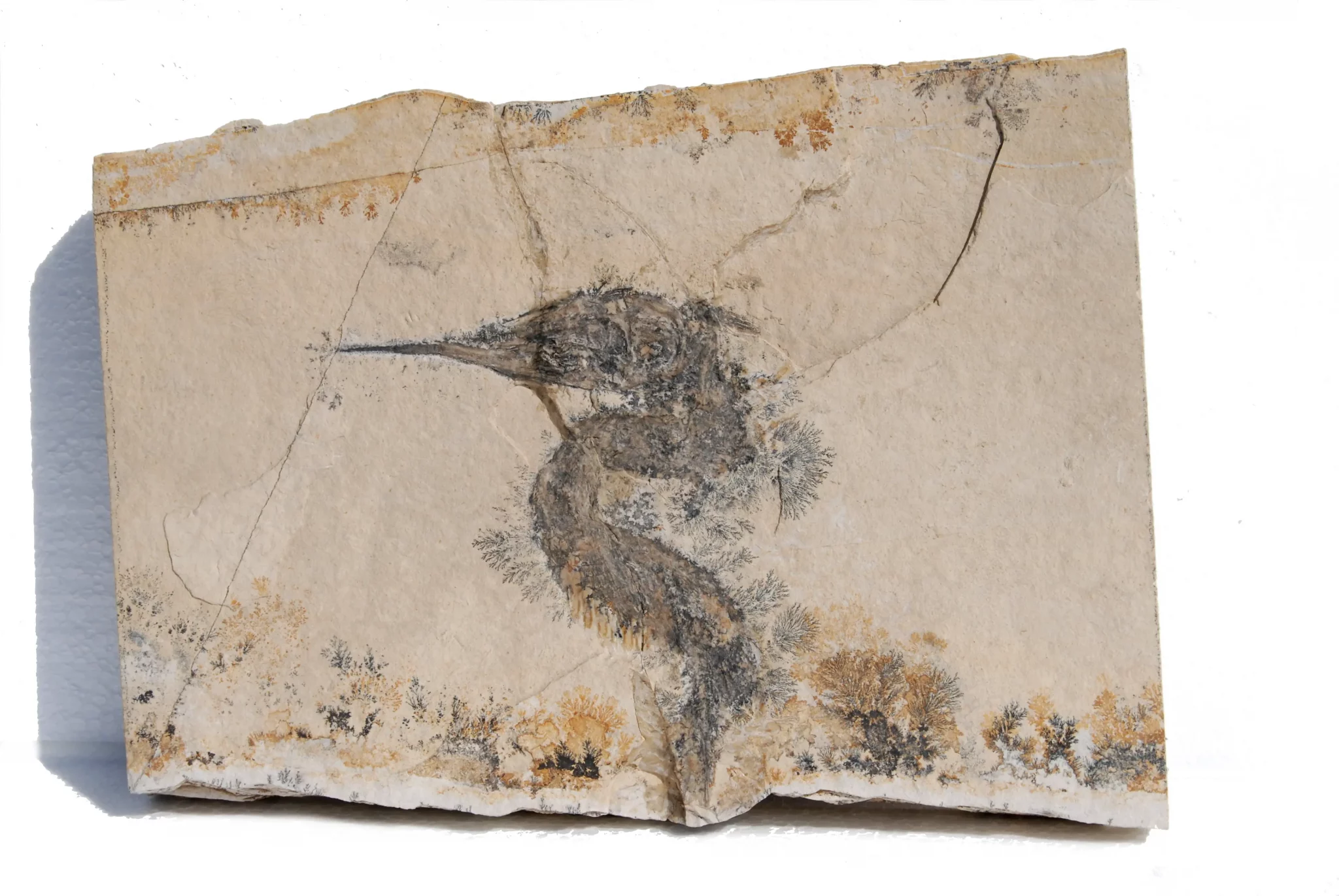 - The “sniper instinct” in the stone: The most striking feature is the extremely elongated rostrum (snout), in which the lower jaw often protrudes beyond the upper jaw. In the fossil record, Belonostomus is occasionally found in spectacular “feeding scenes”, which underlines its role as a highly specialized hunter of smaller fish and crustaceans.