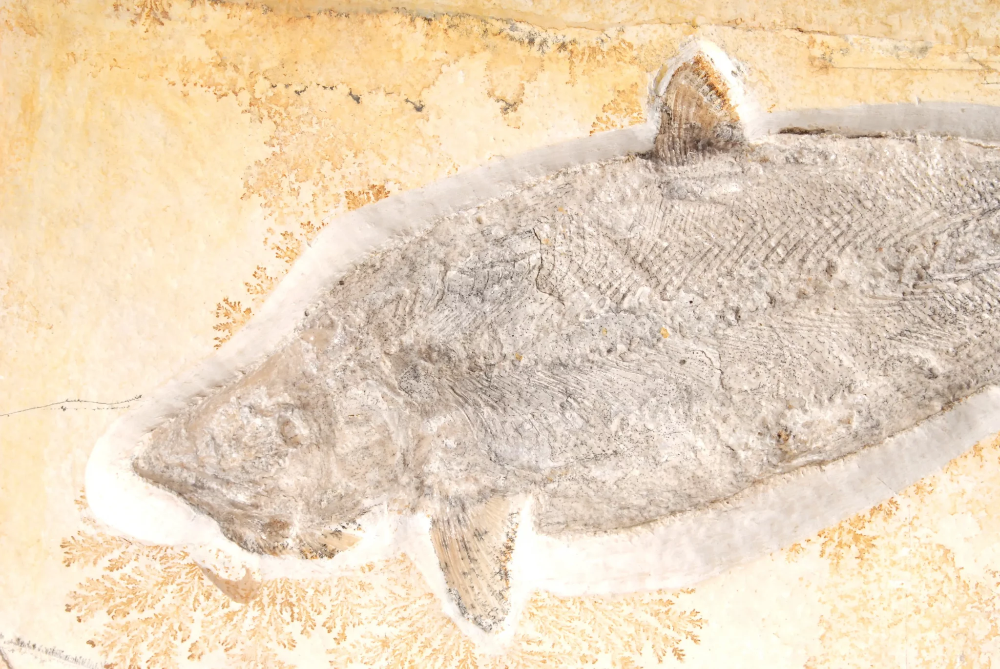 - The aesthetics of contrast: The dark bone structures and the fine fin rays usually stand out magnificently against the cream-colored or light yellow Solnhofen limestone – a visual masterpiece of nature.