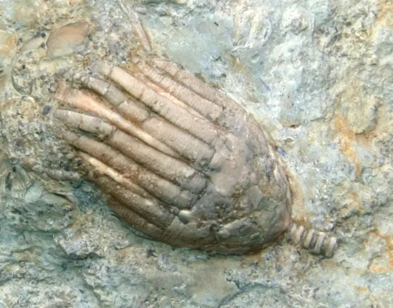 Exzellentes Exemplar „Gotland Crinoid“ einer klassischen Fossillagerstätte (erloschen) mit herausragenden Details auf frei stehender Matrix, ungebrochen. In dieser Qualität selten anzutreffen - museal.